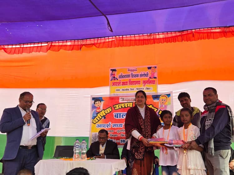 दिघलबैंक. आदर्श मध्य विद्यालय तुलसिया, दिघलबैंक में विभागीय निर्देश के आलोक में चल रहे दो दिवसीय वार्षिक उत्सव के दूसरे दिन शुक्रवार को हम और आप मिलकर करेंगे बच्चों का समग्र विकास विषय पर अभिभावक–शिक्षक संगोष्ठी का आयोजन किया गया. कार्यक्रम की शुरुआत विद्यालय के बच्चों द्वारा प्रस्तुत रंगारंग सांस्कृतिक कार्यक्रम से हुई, जिसमें नृत्य, संगीत, कविता पाठ और नाटक की मनमोहक प्रस्तुतियां दी गयीं. बच्चों की प्रतिभा को देखकर अभिभावक और अतिथि अभिभूत दिखे. मुख्य अतिथि प्रखंड शिक्षा पदाधिकारी नरेश कुमार मंडल ने पिछले दिन आयोजित स्पोर्ट्स मीट में उत्कृष्ट प्रदर्शन करने वाले छात्र–छात्राओं को मेडल एवं प्रमाण-पत्र देकर सम्मानित किया. उन्होंने बच्चों को पढ़ाई के साथ-साथ खेल व सांस्कृतिक गतिविधियों में भाग लेने के लिए प्रेरित किया. विद्यालय के प्रभारी प्रधानाध्यापक ने अपने संबोधन में कहा कि यह दिन केवल उत्सव का नहीं, बल्कि मंथन और संकल्प का दिन है. उन्होंने कहा कि बच्चों के सर्वांगीण विकास के लिए विद्यालय और अभिभावकों का समन्वय बेहद जरूरी है. उन्होंने अभिभावकों से आग्रह किया कि वे बच्चों से रोज़ संवाद करें, उनकी पढ़ाई में रुचि लें, मोबाइल का सीमित उपयोग कराएं और उनकी तुलना दूसरों से नहीं बल्कि उनके अपने पिछले प्रदर्शन से करें. उन्होंने कहा कि विद्यालय का उद्देश्य केवल परीक्षा परिणाम देना नहीं, बल्कि बच्चों को आत्मविश्वासी, अनुशासित व नैतिक रूप से मजबूत नागरिक बनाना है. कार्यक्रम में तौहीद आलम, ब्रह्मदेव प्रसाद, शुभजित सिन्हा, ममता कुमारी, उमा कुमारी, चम्पा साह, राजेश्वरी कुमारी, उमेश प्रसाद सिंह एवं मो. गुलाम हैदर सहित अभिभावक व ग्रामीण उपस्थित थे.