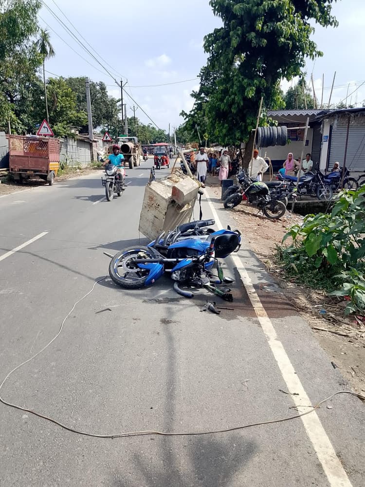 पहाड़कट्टा. इस्लामपुर-ठाकुरगंज मुख्यपथ पर चिचुआबाड़ी चौक के समीप एक मिनी ट्रक पर लदा पुल निर्माण का सामान बीच सड़क पर अचानक गिर गया. जिससे पीछे आ रही बाइक अनियंत्रित होकर दुर्घटनाग्रस्त हो गयी व सवार दोनों युवक गिरकर चोटिल हो गये. यह सड़क हादसा सोमवार को चिचुआबाड़ी के समीप उस समय हुआ, जब शेखपुरा डोंक नदी पर चल रहे पुल निर्माण कार्य का लोहा का सामान एक मिनी ट्रक पर लाद कर ठाकुरगंज की ओर ले जाया रहा था. चिचुआबाड़ी में अचानक विद्युत तार में लोहे का बक्सा फंसने के कारण हादसा हुआ. घायल दोनों युवकों की पहचान पश्चिम बंगाल के धनतोला गांव निवासी मोहम्मद असलम व अहमद रजा के रूप में हुई है. घटना स्थल पर दर्जनों लोगों की भीड़ जुट गयी.