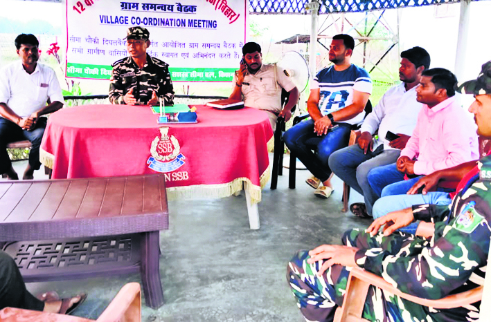दिघलबैंक(किशनगंज).एसएसबी 12वीं वाहिनी की जी कंपनी मुख्यालय दिघलबैंक में एसएसबी अधिकारी एवं स्थानीय ग्रामीणों के साथ एक बैठक का आयोजन किया गया. बैठक की अध्यक्षता कंपनी प्रभारी इस्पेक्टर एल अहंजाओ सिंह व दिघलबैंक थानाध्यक्ष सुमेश कुमार सिंह ने संयुक्त रूप से किया. बैठक में उपस्थित लोगों को संबोधित करते हुए इंस्पेक्टर श्री सिंह ने कहा कि सीमावर्ती क्षेत्र का समुचित विकास तभी होगा जब सीमावर्ती क्षेत्र के लोग शिक्षा को महत्व देंगे तथा अपने परिवार के सभी लोगों को शिक्षित करेंगे. शिक्षा के अभाव के कारण ही युवा भटक जाते हैं. साथ ही बेटी बचाओ बेटी पढ़ाओ के नारे पर जोर दिया गया. उन्होंने कहा कि बच्चियों को शिक्षित करना बहुत जरूरी हैं. खासकर सीमावर्ती क्षेत्र में अशिक्षा के कारण लोग गलत रास्तों पर उतर जाते है.उन्होंने कहा शिक्षा का महत्व सभी को समझना चाहिए तथा अपने बच्चों को बेहतर शिक्षा देने का प्रयास करें.उपस्थित लोगों उन्होंने परीक्षा पे चर्चा के बारे में बताया. साथ ही सीमावर्ती क्षेत्र में बढ़ रहे तस्करी एवं मादक पदार्थों की तस्करी एवं सेवन की रोकथाम को लेकर की लोगों को विस्तृत जानकारी दी. उन्होंने कहा कि आज हमारे देश में बढ़ रहे जनसंख्या एक बड़ी समस्या हैं. बढ़ रहे जनसंख्या की रोकथाम के बारे में लोगों को जागरूक किया. उन्होंने कहा कि भारत नेपाल सीमा की सुरक्षा में एसएसबी पूरी मुस्तैदी के साथ लगा हुआ है.इसमें ग्रामीणों का सहयोग बहुत जरूरी है.बिना ग्रामीणों के सहयोग से पूरी तरह तस्करी पर अंकुश लगाना संभव नहीं है. बैठक में दिघलबैंक मुखिया प्रतिनिधि गणेश कुमार सिंह, एसएसबी अधिकारी सहित अन्य लोग उपस्थित थे.
