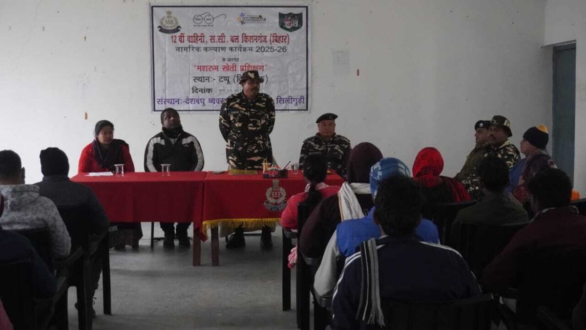 दिघलबैंक.भारत-नेपाल सीमा पर तैनात एसएसबी न सिर्फ देश की सुरक्षा में अहम भूमिका निभा रही है, बल्कि सीमावर्ती गांवों के सामाजिक और आर्थिक विकास में भी सराहनीय योगदान दे रही है. इसी कड़ी में सोमवार को 12वीं वाहिनी एसएसबी के उप कमांडेंट सुस्वपन कुंडू की अध्यक्षता में एफ समवाय दिघलबैंक के द्वारा जीवंत गांव (वाइब्रेंट विलेज) टप्पू में मशरूम की खेती पर आधारित व्यावसायिक प्रशिक्षण कार्यक्रम का शुभारंभ किया गया. इस अवसर पर सहायक कमांडेंट प्रिय रंजन चकमा, सहित समवाय के अन्य जवान भी उपस्थित थे. कार्यक्रम के दौरान ग्रामीणों को आत्मनिर्भर बनाने और वैकल्पिक आय के साधन उपलब्ध कराने पर विशेष जोर दिया गया.यह प्रशिक्षण कार्यक्रम नागरिक कल्याण कार्यक्रम के अंतर्गत दिनांक 05 जनवरी से 21 जनवरी 2026 तक आयोजित किया जाएगा, जिसमें 25 ग्रामीणों को मशरूम की वैज्ञानिक एवं व्यावसायिक खेती का प्रशिक्षण दिया जाएगा. प्रशिक्षण के माध्यम से ग्रामीणों को कम लागत में अधिक आमदनी के उपाय बताए जाएंगे. उप कमांडेंट सुस्वपन कुंडू ने सभी प्रशिक्षार्थियों को शुभकामनाएं देते हुए कहा कि एसएसबी का उद्देश्य सीमा की सुरक्षा के साथ-साथ सीमावर्ती क्षेत्रों में रोजगार, स्वावलंबन और खुशहाली को बढ़ावा देना है.उन्होंने आशा जताई कि प्रशिक्षण प्राप्त कर ग्रामीण इसे व्यवसाय के रूप में अपनाएंगे और अपनी आर्थिक स्थिति को मजबूत करेंगे. ग्रामीणों ने एसएसबी की इस पहल की सराहना करते हुए कहा कि ऐसे प्रशिक्षण कार्यक्रमों से उन्हें नया मार्गदर्शन और आत्मविश्वास मिल रहा है. स्थानीय लोगों का मानना है कि एसएसबी की यह पहल वाइब्रेंट विलेज योजना को धरातल पर साकार करने की दिशा में एक मजबूत कदम है.सीमावर्ती क्षेत्र में एसएसबी द्वारा चलाए जा रहे ऐसे नागरिक कल्याण कार्यक्रम सुरक्षा के साथ विकास का संतुलित उदाहरण प्रस्तुत कर रहे हैं.