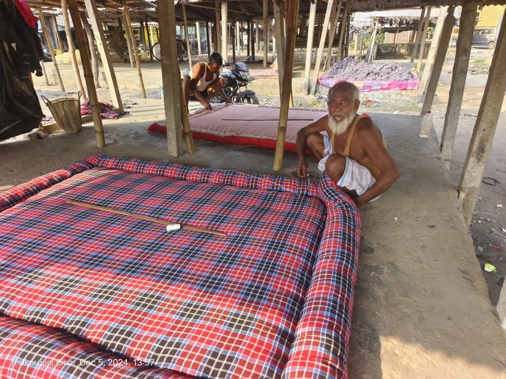 प्रतिवर्ष की तरह इस वर्ष कपास (रूई) से सर्दी के लिए तैयार होने वाली रजाई के कारीगर बाजारों में दिखने लगे हैं. सर्दियों का सीजन शुुरू हो गया है और ठाकुरगंज शहर के विभिन्न इलाकों में रूई धुनने वालों की आवाज सुनाई देने लगी है. बताते चले सर्दियों के दौरान तोशक बनाने के लिए सूबे के विभिन्न जिलो से तो कारीगर आते हैं ही कई कारीगर स्थाई रूप से ठाकुरगंज में ही रहते है. जानकारो की माने तो ठाकुरगंज के विभिन्न क्षेत्रों में करीब दो दर्जन कारीगर टीम में काम करते हैं. बाहर से आने वाले ये कारीगर कई महीनों के लिए अलग-अलग इलाकों में मकान किराए पर लेते हैं. सुबह होते ही वे साइकिल से शहर व ग्रामीण इलाकों में निकल पड़ते हैं. शहरवासियों की मांग के अनुरूप कहीं पुरानी रजाई काे फिर रूई धुनकर नया बनाते है, तो कहीं और नई रजाई बनाते हैं. वह ग्राहकों की सुविधा के लिए आवश्यक सामग्री स्वयं ले जाते हैं.हालांकि, कई वर्षों से रंग-बिरंगे कंबलों की बाजार में बाढ़ आ गई है. इसकी तुलना में हाथ से बने कवर और कुशन की संख्या कम होने लगी है. उनमें से वह जीविकोपार्जन के प्रयासों में पिछली पीढ़ी के पेशे पर निर्भर रहे हैं. सत्तर वर्षीय फिदा हुसैन जो पिछले 55 साल से तो अलादीन भी पिछले 40 साल से इस पेशे से जुड़े है कहते है कंबल के प्रति लोगों के बढ़ते रुझान से उन्हें काम कम मिल रहा है. मांग में कमी और कपास तथा कपड़े की कीमत में वृद्धि के कारण हमारी आय पहले की तुलना में बहुत कम हो गयी है.