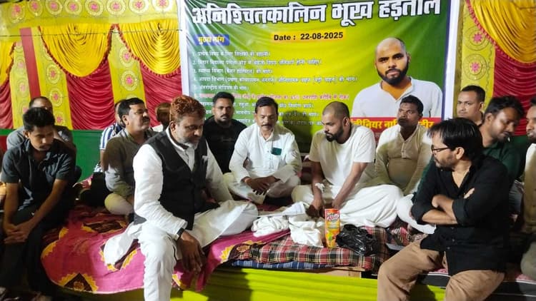 किशनगंज. जिला परिषद सदस्य नासिक नदीर ने अनिश्चितकालीन भूख हड़ताल को समाप्त कर दिया. रविवार की देररात एआइएमआइएम बिहार प्रदेश अध्यक्ष अख्तरूल ईमान ने जिप सदस्य नासिक नदीर को जूस पिलाकर उनकी भूख हड़ताल समाप्त कराई. इस दौरान किशनगंज एसडीएम अनिकेत कुमार भी मौजूद थे. मालूम हो कि अपनी मुख्य मांगों को लेकर जिला परिषद सदस्य नासिक नदीर जिला मुख्यालय में टाउन हॉल के समक्ष पिछले तीन दिनों से अनिश्चितकालीन भूख हड़ताल में थे. भूख हड़ताल पर बैठे जिप सदस्य नासिक नदीर की प्रमुख मांगों में प्रत्येक विषय के लिए शिक्षकों की बहाली, बिहार विद्यालय परीक्षा बोर्ड में अंग्रेजी विषय अनिवार्य होनी चाहिए, स्वास्थ्य विभाग (कैंसर हॉस्पिटल) की मांग, आपदा विभाग (प्रखण्ड कोचाधामन अंतर्गत) अग्निशामक वाहन (बड़ी वाहन) की मांग, अंतर्राष्ट्रीय स्टेडियम की मांग, महानन्दा, डॉक, मेची, रतुआ, कोल नदियों में बांध निर्माण कार्य सहित पूर्णियों में उच्च न्यायालय का एक बेंच की मांग और एसआईआर मामले में 11 दस्तावेज के अलावे सुप्रीम कोर्ट के आदेश पर आधार कार्ड को मान्य करते हुए एसआईआर में शामिल करना शामिल था. इस दौरान बड़ी संख्या में उनके समर्थक मौजूद थे.