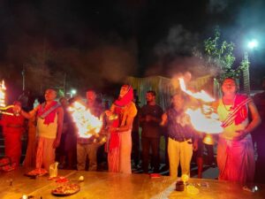 शरद पूर्णिमा पर बड़हिया कॉलेज गंगा घाट पर हुई भव्य गंगा आरती कार्यक्रम