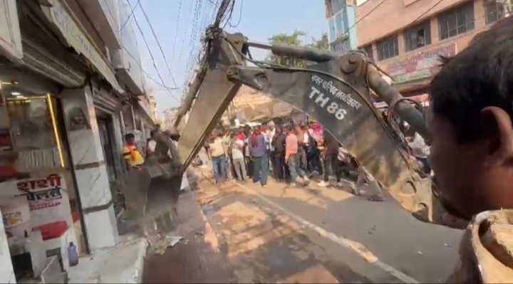 अतिक्रमण हटाओ अभियान के तहत दूसरे दिन शुक्रवार को नया बाजार में बुलडोजर चलाकर अतिक्रमित फुटपाथ को खाली किया गया