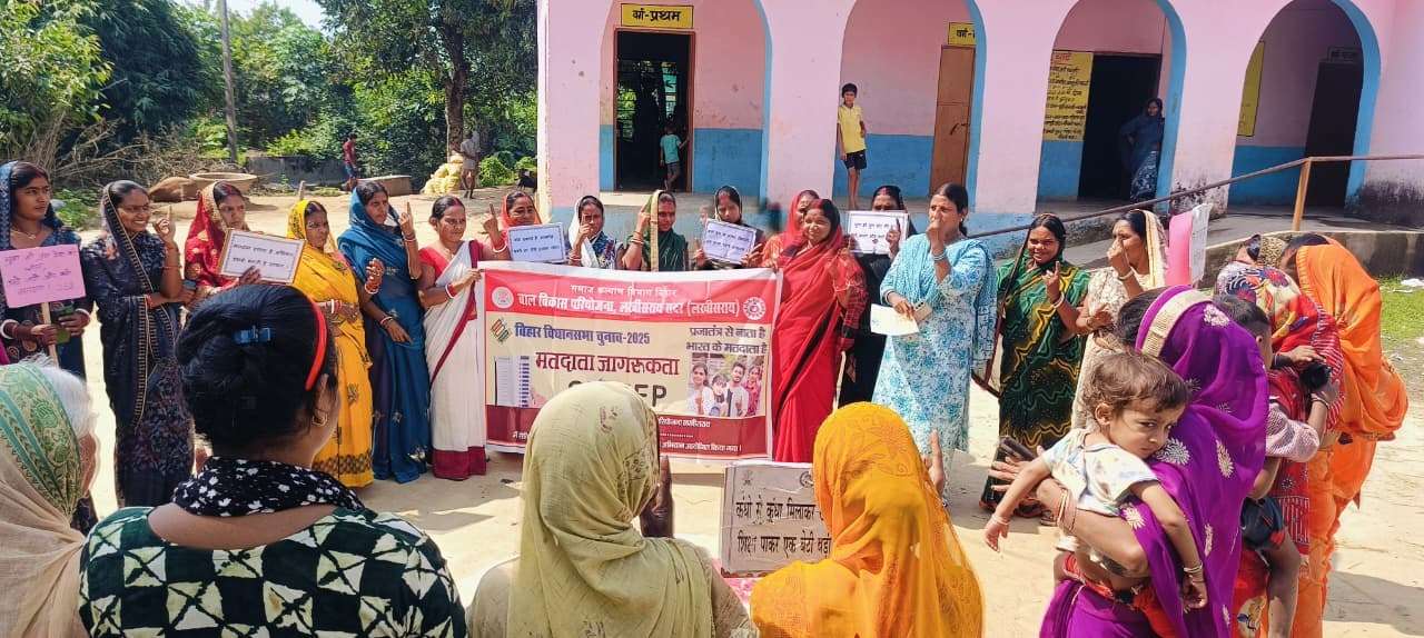 चानन में मतदाता जागरूकता अभियान चलाया गया चानन. बाल विकास परियोजना पदाधिकारी विभा कुमारी के दिशा-निर्देश में चानन प्रखंड के विभिन्न आंगनबाड़ी केंद्रों पर महिला पर्यवेक्षिकाओं द्वारा मतदाता जागरूकता अभियान चलाया गया. इसी क्रम में केंद्र संख्या 252 की सेविका क्रांति सिंह ने महिला पर्यवेक्षिका सोनी कुमारी के नेतृत्व में मंडल टोला भंडार से जागरूकता रैली निकाली. अभियान के दौरान बच्चों ने “पहले मतदान करें, फिर जलपान करें ” जैसे नारे लगाकर मतदाताओं को प्रेरित किया. इसके अलावा अन्य प्रेरक स्लोगनों के माध्यम से भी लोगों को मतदान के लिए जागरूक किया गया. सेविका क्रांति सिंह ने अपने पोषक क्षेत्र में घर-घर जाकर लोगों को मतदान के महत्व के बारे में जानकारी दी. इस अवसर पर सहायिका सुजाता कुमारी, आशा कार्यकर्ता रिंकू कुमारी समेत कई ग्रामीण महिलाएं मौजूद रहीं.