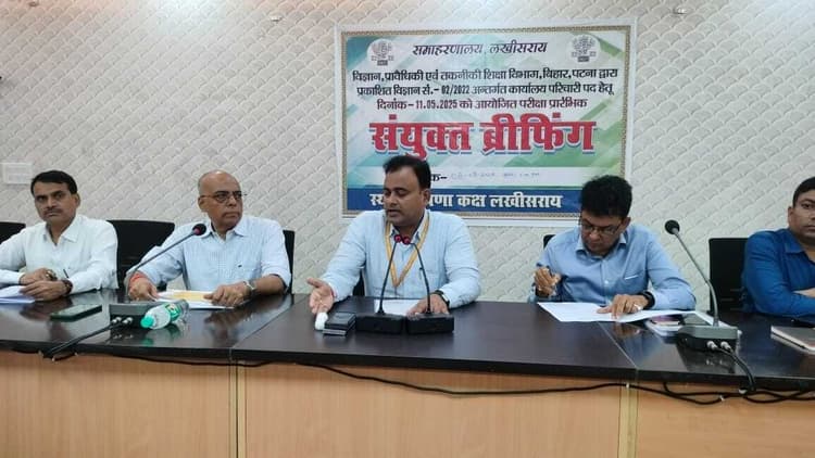 समाहरणालय स्थित मंत्रणा कक्ष में गुरुवार को डीएम मिथिलेश मिश्रा की अध्यक्षता में आगामी 11 में को विज्ञान प्रौद्योगिकी एवं तकनीकी शिक्षा विभाग बिहार पटना द्वारा ली जाने वाली कार्यालय परिचारी की परीक्षा को लेकर संयुक्त ब्रीफिंग की गयी है. ब्रीफिंग में मौजूद सभी मजिस्ट्रेट केंद्राधीक्षक एवं शिक्षकों को बताया गया कि परीक्षा को लेकर आठ परीक्षा केंद्र बनाये गये हैं. जिसमें राजकीय उच्च विद्यालय हसनपुर, केआरके हाई स्कूल, पुरानी बाजार उच्च विद्यालय महिला विद्या मंदिर, श्री दुर्गा प्लस टू उच्च विद्यालय लखीसराय, रामेश्वर सिंह हाई स्कूल बालगुदर, बालिका विद्यापीठ एवं नाथ पब्लिक स्कूल को परीक्षा केंद्र शामिल है. परीक्षा 12 बजे अपराह्न से दो बजे अपराह्न तक ली जायेगी. इसके लिए परीक्षा केंद्र पर नौ से प्रवेश कराया जायेगा एवं 11 बजे मुख्य गेट को बंद कर दिया जायेगा. परीक्षा का नोडल पदाधिकारी सुधांशु शेखर बनाया गया. सहायक नोडल पदाधिकारी वरीय उप समाहर्ता विनोद प्रसाद, जिला शिक्षा पदाधिकारी यदुवंश राम को बनाया गया है. स्वच्छ एवं सदाचार मुक्त परीक्षा के लिए सभी केंद्रों पर सीसीटीवी लगा हुआ रहेगा. आठ परीक्षा केंद्र को नया बाजार एवं पुरानी बाजार को दो जोन में बांटा गया. नया बाजार के उड़नदस्ता एडीएम सुधांशु शेखर पुरानी बाजार के डीडीसी सुमित कुमार को बनाया गया है. परीक्षा केंद्र के अंदर इलेक्ट्रॉनिक सामान घड़ी मोबाइल आगे ले जाने के लिए वर्जित है. परीक्षा केंद्र पर दंडाधिकारी एवं स्टैटिक दंडाधिकारी नियुक्त किया गया है. वहीं महिला परीक्षा केंद्र पर महिला अंचलाधिकारी, सीडीपीओ एवं आरओ को नियुक्त किया गया है. परीक्षा संचालन के दौरान कोई भी विकट परिस्थिति छोड़कर अन्य स्थिति में केंद्र से बाहर नहीं जा सकते हैं.डिस्क्लेमर: यह प्रभात खबर समाचार पत्र की ऑटोमेटेड न्यूज फीड है. इसे प्रभात खबर डॉट कॉम की टीम ने संपादित नहीं किया है