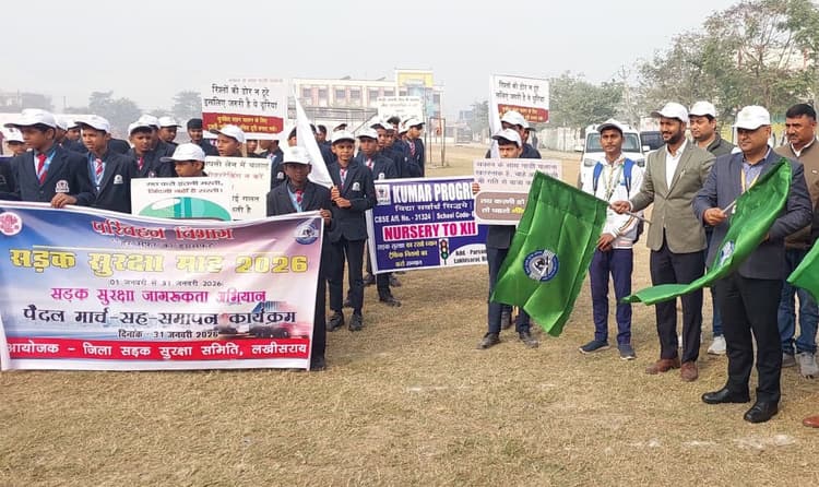लखीसराय. सड़क सुरक्षा माह के समापन को लेकर जिला सुरक्षा समिति द्वारा जागरूकता रैली निकाली गयी रैली को गांधी मैदान से डीएम मिथलेश मिश्र, डीटीओ मुकुल पंकज मणि एवं यातायात डीएसपी अजय कुमार द्वारा हरी झंडी दिखाकर रवाना किया. जागरूकता रैली गांधी मैदान से निकलकर आरलाल कॉलेज तक पहुंची इस बीच जागरूकता रैली में शामिल स्कूली बच्चे ने सावधानी हटी दुर्घटना घटी, बाइक सवार सुरक्षित यात्रा के लिए हेलमेट का प्रयोग करें, कार सवार सीट बेल्ट लगाकर चले जैसे कई स्लोगन के साथ नारा लगाते हुए आरलाल कॉलेज पहुंचा. इस बीच बिना हेलमेट बाइक चालक को हेलमेट पहनने एवं कार चालक को रोककर सीट बेल्ट लगाने का सलाह दी गयी. जागरूकता रैली में स्कूली बच्चे के एमवीआइ प्रतीक कुमार के अलावा शिक्षकगण भी मौजूद रहे.