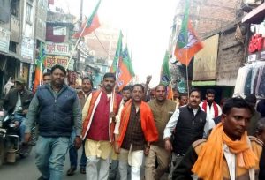 दिल्ली में जीत की खुशी को लेकर शहर में भाजपाइयों ने निकला विजयी जुलूस