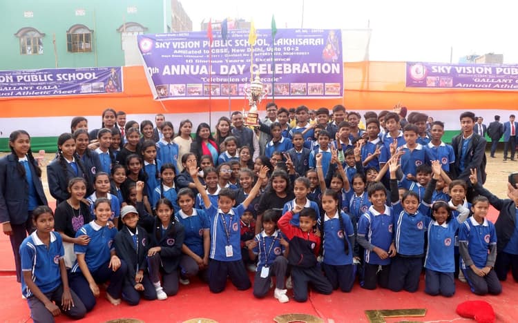 लखीसराय. नया बाजार स्थित स्काई विजन पब्लिक स्कूल में चल रहे गैलेंट गाला एनुअल एथलीट मीट महोत्सव का सोमवार को समापन किया गया, जिसमें मुख्य अतिथि के रूप में एएसपी अभियान मोतीलाल शामिल हुए. कार्यक्रम का समापन मुख्य अतिथि द्वारा झंडे को नीचे उतारकर एवं मशाल को विधिवत बुझाकर गैलेंट गाला एनुअल एथलीट मीट के समापन की घोषणा की गयी. अभिभावकों के लिए मनोरंजक खेलों का आयोजन हुआ, जिसमें बॉल रेस, पेंटिंग द ट्री एवं म्यूजिकल चेयर प्रमुख थे. इन खेलों में अभिभावकों ने बड़े उत्साह एवं जोश के साथ हिस्सा लिया. पेंटिंग द ट्री प्रतियोगिता में तपो श्री सेन प्रथम, निर्मला देवी द्वितीय तथा फरहीन नाजिया एवं सीमा कुमारी तृतीय स्थान पर रही. वहीं बॉल रेस में संध्या कुमारी प्रथम, ज्योति कुमारी द्वितीय तथा विभा कुमारी तृतीय स्थान पर रही. वहीं म्यूजिकल चेयर प्रतियोगिता में सुप्रिया कुमारी प्रथम, सिंकी कुमारी द्वितीय तथा आरती कुमारी तृतीय स्थान पर रही. विभिन्न खेलों के पश्चात सांस्कृतिक कार्यक्रम का भी आयोजन किया गया. इस पूरे खेल आयोजन में ब्लू हाउस चैंपियन रहा, जबकि येलो उपविजेता के स्थान पर कब्जा किया. खेल में उत्कृष्ट प्रदर्शन करने वाले सभी छात्र-छात्राओं को विद्यालय द्वारा मेडल एवं प्रशस्ति पत्र देकर सम्मानित किया गया. मुख्य अतिथि श्री मोतीलाल ने विद्यालय के द्वारा उठाये गये इस कदम को सराहनीय बताया और कहा कि खेलकूद से विद्यार्थियों में नेतृत्व समान लक्ष्य के लिए मिलकर काम करना खेल की भावना, साहस व सहनशीलता जैसे आवश्यक सद्गुणों का विकास होता है. कार्यक्रम समाप्ति पर भाषण देते हुए विद्यालय सचिव सबिता शर्मा ने कहा जिस प्रकार लखीसराय नगर वासियों ने इस विद्यालय पर अपना विश्वास एवं भरोसा किया है, हम कोशिश करेंगे भविष्य में भी उनकी आशाओं पर खड़ा उतरेंगे. कार्यक्रम के दौरान विद्यालय निदेशक बबलू शर्मा, नीरज कुमार, प्राचार्या मैग्डलीन गोम्स, प्रबंधक विमलेश कुमार, शिक्षक प्रमोद कुमार, निशांत भारती, टिंकू भारती, जयशंकर, खेल शिक्षक मिट्ठू राम, नृत्य शिक्षक रवि वर्मा सहित सभी शिक्षक एवं शिक्षकेतर कर्मचारी मौजूद थे. विद्यालय निदेशक बबलू शर्मा ने सभी शिक्षकों एवं आये हुए अभिभावकों को धन्यवाद ज्ञापित किया.