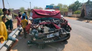 कार की हाइवा से हुई आमने-सामने की टक्कर, चार घायल