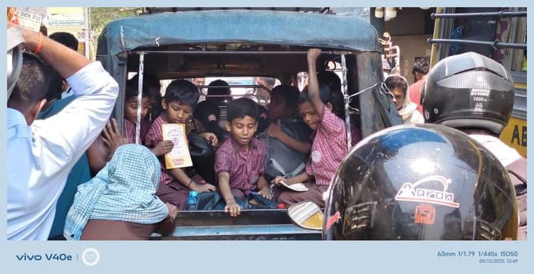 प्रतिबंध के बाद भी ऑटो में ठूंस-ठूंसकर बच्चों को ले जाया जा रहा स्कूल