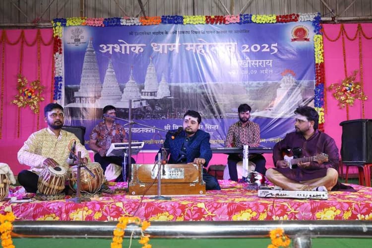 लखीसराय. अशोक धाम महोत्सव के पहले दिन सोमवार की देर शाम को आयोजित सांस्कृतिक कार्यक्रम के दौरान अभिषेक पाठक ग्रुप द्वारा भजन संध्या का आयोजन किया गया. इस दौरान अभिषेक द्वारा अनूप जलोटा के भजन ‘ऐसी लागी लगन मीरा हो गयी मगन’ गीत से श्रोताओं को झूमने पर मजबूर कर दिया. उनके द्वारा एक से बढ़कर एक भक्ति तों की प्रस्तुति दी गयी. उनके साथ तबला पर चंदन ठाकुर, गिटार पर प्रीतम मिश्रा, की पैड पर सन्नी ऑस्कर एवं पैड पर संतोष सिन्हा उर्फ डब्लू जी संगत दे रहे थे. इससे पूर्व जिलाधिकारी मिथिलेश मिश्र, कला संस्कृति पदाधिकारी मृणाल रंजन, अशोक धाम ट्रस्ट के सचिव डॉ कुमार अमित के द्वारा कार्यक्रम का दीप प्रज्वलित कर शुभारंभ किया गया.