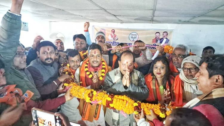 लखीसराय. भारतीय जनता पार्टी के बाइपास स्थित कार्यालय में भाजपा के पार्टी के संगठनात्मक चुनाव के अंतर्गत भाजपा की बैठक आयोजित की गयी. बैठक में सभी 18 संगठनात्मक मंडल के मंडल अध्यक्ष पार्टी के सभी पदाधिकारी, मंच मोर्चा के जिलाध्यक्ष की सहमति से लखीसराय के जिलाध्यक्ष दीपक कुमार सिंह के नाम की घोषणा की गयी. जिलाध्यक्ष की घोषणा बिहार सरकार के उपमुख्यमंत्री सह लखीसराय विधायक विजय कुमार सिन्हा ने की. उन्होंने अपने संबोधन में बताया कि भाजपा लखीसराय का संगठन के चुनाव के दौरान सर्वप्रथम प्राथमिक सदस्यता बनाया गया, उसके बाद सक्रिय सदस्य बनाये गये. सक्रिय सदस्यता के बाद मंडल अध्यक्ष का चयन किया गया. मंडल अध्यक्ष के चयन के बाद जिलाध्यक्ष का चयन किया गया. जिलाध्यक्ष की घोषणा के उपरांत दीपक कुमार सिंह ने अपने संबोधन में भारतीय जनता पार्टी के केंद्रीय नेतृत्व एवं प्रदेश नेतृत्व के प्रति आभार व्यक्त करते हुए सभी कार्यकर्ताओं को धन्यवाद ज्ञापित किया.