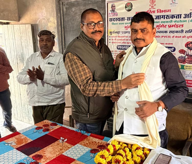 सूर्यग्रढ़ा प्रखंड प्राथमिक सब्जी उत्पादक सहकारी समिति लिमिटेड ने 28 जनवरी को रामजानकी उच्च विद्यालय के प्रांगण में बैठक आयोजित किया गया. इसकी अध्यक्षता समिति के उपाध्यक्ष रंजीत कुमार ने किया. सहकारी जागरूकता अभियान के तहत बैठक आयोजित किया गया. जिसमें मुंगेर प्रमंडल सब्जी संस्करण एवं विपणन सहकारी संघ अध्यक्ष राकेश कुमार उपस्थित हुए. इनके अलावा प्रखंड के भिन्न-भिन्न कोने से सब्जी उत्पादक किसान उपस्थित होकर समिति का सदस्यता ग्रहण किया. कार्यक्रम में कहा गया कि बिहार के मुख्यमंत्री का उद्देश्य है कि बिहार का सब्जी हिंदुस्तान के हर थाली में पहुंच सके, जिससे सब्जी उत्पादक किसान को उचित मूल्य पर मिल सके. इस अवसर पर खावा राजपुर के पैक्स अध्यक्ष प्रकाश कुमार उर्फ जेपी, सूर्यपूरा के पैक्स अध्यक्ष अमित भाई पटेल, किरणपुर पंचायत के पूर्व मुखिया अनंत कुमार आनंद एवं ग्रामीण गिरीश कुमार, अभिषेक कुमार, मनोज यादव, अन्य गणमान्य लोग उपस्थित हुए. उक्त अभियान के तहत लगभग 25 से ज्यादा सब्जी उत्पादक किसानों के द्वारा समिति का सदस्यता ग्रहण किया गया. स्थानीय किसानों की मांग है कि इस प्रखंड में बहुत अधिक मात्रा में सब्जी का उत्पादन होता है लेकिन उसके लिए स्टोरेज की व्यवस्था नहीं होने के कारण औने-पौने दाम में किसान अपना सब्जी बेच देता है. जिससे उनको काफी घाटा होता है. मुंगेर प्रमंडल संघ के अध्यक्ष ने कहा कि डीएम एवं यहां के स्थानीय विधायक को पत्र लिखकर जमीन उपलब्ध करने के लिए अनुरोध पत्र दिया गया है, जमीन अगर मिल जाता है तो यहां आधारभूत संरचना का काम किया जायेगा. अंत में धन्यवाद ज्ञापन के बाद सदस्यता सह जागरूकता सभा को समाप्त किया गया.