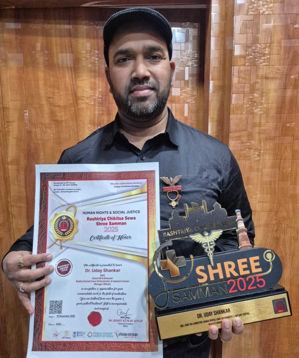 राष्ट्रीय चिकित्सा सेवा श्री सम्मान 2025 से डॉ उदय शंकर हुए सम्मानित