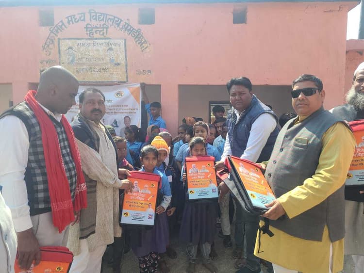 हलसी. प्रखंड क्षेत्र अंतर्गत सरकारी विद्यालयों में स्कूल बैग का वितरण किया गया. स्कूल बैग वितरण का कार्यक्रम भाजपा के पूर्वी प्रखंड अध्यक्ष राजीव रंजन उर्फ पप्पू सिंह एवं पश्चिमी प्रखंड अध्यक्ष कृष्णनंदन महतो की अध्यक्षता में हलसी प्रखंड सरकारी विद्यालयों में स्कूल में वितरण किया गया. वहीं भाजपा के पूर्वी प्रखंड अध्यक्ष राजीव रंजन उर्फ पप्पू सिंह ने बताया कि गेल इंडिया लिमिटेड द्वारा निगमित सामाजिक उत्तरदायित्व के तहत यूनिसेड संस्थान के सहयोग से बच्चों के शिक्षा एवं स्वास्थ्य सुधारण के लिए निवारण नवाचार कार्यक्रम के तहत सभी विद्यालय के वर्ग एक से 5 तक के छात्र-छात्राओं के बीच स्कूल बैग एवं एजुकेशन डेक्स का वितरण किया गया. वहीं सोमवार मोहदीनगर पंचायत के प्रेमडीहा में स्थित उत्क्रमित मध्य विद्यालय प्रेमडीहा हिंदी में वर्ग एक से 5 विद्यार्थियों के बीच 198 बैंग वितरण किया गया. प्राथमिक विद्यालय प्रेमदिहा में 115 बच्चों के बीच में बैग वितरण किया गया. उत्क्रमित मध्य विद्यालय महुआडी, प्राथमिक मध्य विद्यालय दुलारपुर, उत्क्रमित मध्य विद्यालय विल्ली, प्राथमिक विद्यालय नोनफर, प्राथमिक विद्यालय रघुनंदन बीघा में बैग वितरण किया गया. मौके पर उपस्थित भाजपा पूर्वी प्रखंड अध्यक्ष राजीव रंजन उर्फ पप्पू सिंह, पश्चिमी प्रखंड अध्यक्ष कृष्णानंदन महतो, भायजुमो जिलाध्यक्ष सोनू चंद्रवंशी, पंकज कुमार शंभू कुमार, धीरज कुमार सलीम खान, सतीश पासवान, जालो यादव एवं सभी विद्यालय के प्रधानाध्यापक एवं शिक्षक-शिक्षिकाओं उपस्थिति रहे.