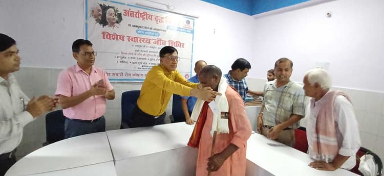 लखीसराय. अंतरराष्ट्रीय वृद्ध दिवस को लेकर गुरुवार को सदर अस्पताल के सभागार में स्वास्थ्य विभाग के एनसीडीओ प्रभाग ने विशेष कार्यक्रम का आयोजन कर वृद्ध मरीज को चादर एवं छड़ी देकर सम्मानित किया. सीएस डॉ बीपी सिन्हा, प्रभारी एसीएमओ अशोक भारती, डीएस डॉ राकेश कुमार, एनसीडीओ प्रभारी डॉ अश्विनी कुमार ने कार्यक्रम का शुभारंभ किया. कार्यक्रम में वृद्ध मरीजों के लिए विशेष स्वास्थ्य जांच व इलाज की सुविधा भी उपलब्ध करायी गयी. डॉ अश्विनी कुमार ने बताया कि एक से नौ अक्तूबर तक सदर अस्पताल सहित जिले के सभी सरकारी स्वास्थ्य संस्थानों में वृद्ध मरीजों के लिए विशेष स्वास्थ्य जांच शिविर लगाया गया है. मौके पर डीपीएम सुधांशु नारायण लाल, अस्पताल प्रबंधक नंदकिशोर भारती एवं दीपक कुमार सहित अन्य लोग मौजूद थे.