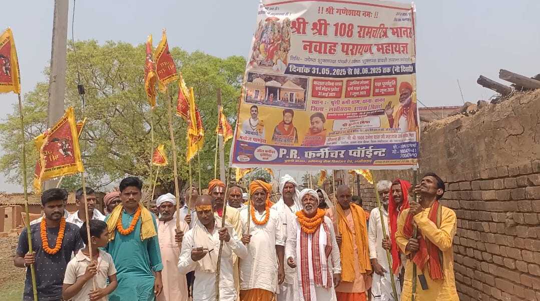 सूर्यगढ़ा. प्रखंड के रामायण कालीन महत्व वाले श्रृंगी ऋषि धाम में 31 मई से आठ जून तक रामचरितमानस नवाह पारायण महायज्ञ शुरू हो रहा है. इसको लेकर गुरुवार को श्रृंगी ऋषि धाम परिसर में यज्ञ स्थल पर ध्वजारोहण का कार्य किया गया. सिंघौल गांव से गाजे बाजे के साथ काफी संख्या में श्रद्धालु हाथों में रामनामी पताका थामे जय श्री राम का जय घोष करते श्रृंगी ऋषि धाम पहुंचे. यहां बड़हिया बाबा की देखरेख में यज्ञ का ध्वजारोहण किया गया.