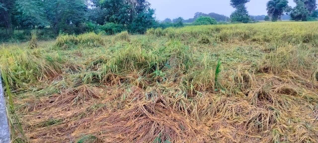 मेदनीचौकी. प्रखंड के टाल क्षेत्र अंतर्गत बीते दो दिनों से हो रही रुक-रुक कर बारिश व तेज हवा से पके धान की तबाही हो रही है, जिससे प्रभावित किसान मायूस हो रहे हैं. किसानों ने बताया कि इस बार भी चित्रा नक्षत्र व समुद्र में उठे तूफान अपना तांडव दिखा रहा है. धान के किसान इसके जद में आ रहे हैं. बताया जा रहा है कि अभी दो दिन व बारिश के आसार है. इसे लेकर धान के किसानों में काफी मायूसी देखी जा रही है. इससे पूर्व बारिश नहीं हो रहा था, जिससे धान फसल की नमी सूखने से भी धान का फसल काफी प्रभावित हुआ है. अब बारिश से पके धान के गिरने से धान का दान खराब होने का डर किसानों को सता रहा है.