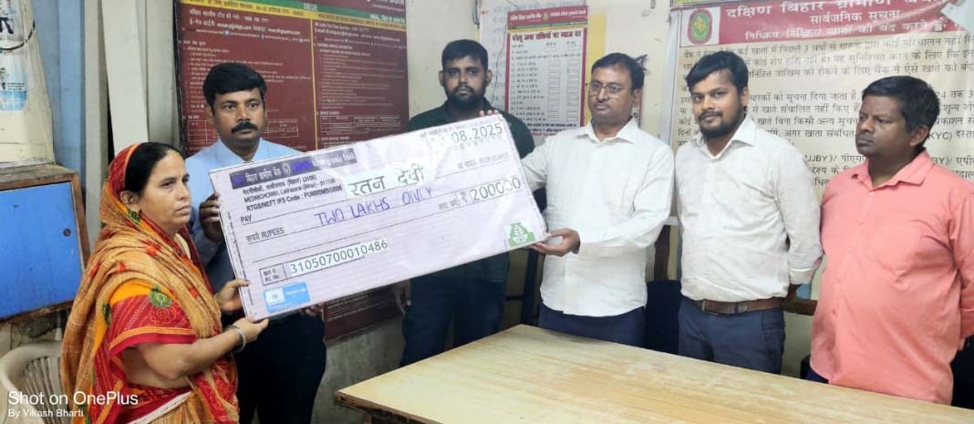 बिहार ग्रामीण बैंक शाखा मेदनीचौकी की ओर से बुधवार को प्रधानमंत्री सुरक्षा बीमा योजना अंतर्गत लाभार्थी को दो लाख की बीमा राशि शाखा की ग्राहक रतनी देवी को प्रदान किया. मालूम हो कि प्रधानमंत्री सुरक्षा बीमा योजना बिहार ग्रामीण बैंक में बजाज एलियांज जनरल इंश्योरेंस कंपनी लिमिटेड द्वारा दिया गया था. बजाज एलियांज के बिहार ग्रामीण बैंक के कॉर्डिनेटर राजीव रौशन व शाखा प्रबंधक दिनेश कुमार पासवान इस दौरान उपस्थित रहे. बिहार ग्रामीण बैंक ग्राहकों के लिए जनरल बीमा, जीवन बीमा, अटल पेंशन योजना एवं प्रधानमंत्री सुरक्षा बीमा योजना का भी लाभ ग्राहकों को प्रदान करती है, जिससे हमारे ग्राहक स्वावलंबी बन सके. मौके पर शाखा के अधिकारी सुजीत कुमार, मनीष कुमार, गीता देवी, संजीत कुमार, मुकुल कुमार गुप्ता एवं बीसीए मुनेश्वर श्याम मौजूद थे.डिस्क्लेमर: यह प्रभात खबर समाचार पत्र की ऑटोमेटेड न्यूज फीड है. इसे प्रभात खबर डॉट कॉम की टीम ने संपादित नहीं किया है