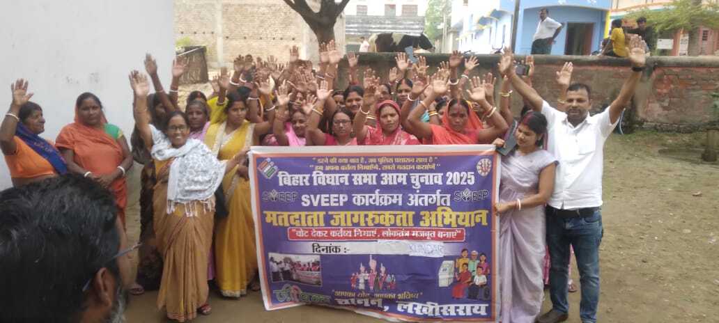 चानन. बिहार विधानसभा चुनाव को लेकर प्रखंड में विभिन्न ग्राम जीविका दीदियों एवं जीविका कर्मी के द्वारा युद्ध स्तर पर स्वीप कार्यक्रम के तहत प्रत्येक गांव में मतदाता जागरूकता अभियान चलाया जा रहा है. अहले सुबह सलोनी जीविका महिला ग्राम संगठन गोपालपुर के द्वारा दीदियों एवं कर्मी के द्वारा मतदाता जागरूकता अभियान चलाया गया. जिसमे गोपालपुर गांव के कई टोलों में रंगोली, रैली निकाली गयी जो डोर-टू-डोर जा कर मतदाताओं अपने मताधिकार के बारे में जागरूक किया गया. इसके साथ ही साथ स्लोगन भी गाया जा रहा था. पहले मतदान फिर जलपान सहित अन्य स्लोगन गाया जा रहा था. मौके पर सीएफ बबलू कुमार, एमबीके कुंदन देवी, बीके धर्मेंद्र कुमार, सीएम मंजू देवी सहित अन्य लोग उपस्थित थे.