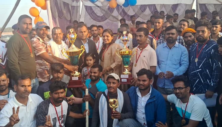 रामगढ़ चौक. प्रखंड अंतर्गत नोनगढ़ गांव में आयोजित 20-20 क्रिकेट टूर्नामेंट के फाइनल मैच खेला गया. जिसमें सुपर ओवर में झाखर की टीम हुई विजयी. टूर्नामेंट में पहुंचे डीएम मिथिलेश मिश्र ने बताया कि तन और मन को स्वस्थ रखने के लिए खेल जरूरी है और हर एक नवयुवक को खेल के प्रति रुझान होनी चाहिए. इसके लिए बिहार सरकार के द्वारा एक मुश्त से जिले के सभी पंचायत में एक-एक खेल मैदान के निर्माण कार्य की स्वीकृति प्रदान की गयी है. 20-20 क्रिकेट मैच के फाइनल मैच में झाखर की टीम पहले बल्लेबाजी करते हुए 136 रन बनाया. लक्ष्य का पीछा करने उतरी लखीसराय की प्रेम इलेवन टीम द्वारा निर्धारित 20 ओवर में नौ विकेट पर 136 रन बनाकर मैच ड्रॉ कर दिया. इसके उपरांत तीन-तीन सुपर ओवर में पहले बल्लेबाजी करते हुए लखीसराय प्रेम इलेवन की टीम द्वारा 14 रन बनाया गया. जिसके जवाब में लक्ष्य का पीछा करने उतरी झाखर की टीम ने निर्धारित लक्ष्य हासिल कर मैच पर कब्जा जमा लिया. मैन ऑफ द मैच झाखर की टीम के खिलाड़ी विराट छोटू को दिया गया. वहीं मैन ऑफ द सीरीज शब्बीर कुमार को दिया गया. बता दें कि नोनगढ़ टूर्नामेंट में कुल 16 टीम ने भाग लिया था. मैच समाप्ति के दौरान विजेता टीम को मुखिया जुली देवी द्वारा 11 हजार रुपये एवं उपविजेता टीम को पांच हजार रुपये नगद राशि दी गयी. टूर्नामेंट में अंपायरिंग अरविंद कुमार साहू एवं विनोद यादव कर रहे थे. स्कोरर का काम दीपक पांडेय, विपिन कुमार एवं अमित कुमार द्वारा किया गया. कुशलता पूर्वक कमेंटेटर का कार्य विकास कुमार, जितेंद्र कुमार के द्वारा किया गया. डीएम एवं मुखिया द्वारा संयुक्त रूप से विजेता उपविजेता टीम कप प्रदान किया गया. मौके पर डीएम ने कहा कि युवाओं के लिए खेल अत्यंत जरूरी है. इसे बढ़ावा देना चाहिए और इसके लिए सरकार भी बढ़-चढ़कर कार्य कर रही है. जनप्रतिनिधियों को भी इसमें सहयोग करना चाहिए.डिस्क्लेमर: यह प्रभात खबर समाचार पत्र की ऑटोमेटेड न्यूज फीड है. इसे प्रभात खबर डॉट कॉम की टीम ने संपादित नहीं किया है