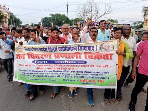 लखीसराय. जन वितरण प्रणाली विक्रेताओं ने सोमवार की देर शाम कैंडिल मार्च निकाल कर एनडीए सरकार के खिलाफ आक्रोश जताया. पीडीएस दुकानदारों ने कमीशन में दम नहीं, 30 हजार रुपये से कम नहीं… स्लोगन के साथ सड़क पर नारेबाजी की. नीतीश सरकार के खिलाफ नारेबाजी की. कैंडिल मार्च शहर के पुरानी मुख्य बाजार होते हुए शहीद द्वार पर जाकर खत्म हुआ. जन वितरण संघ जिलाध्यक्ष अरविंद कुमार सिंह एवं प्रदेश नेता काशी ओंकार नाथ मुन्ना ने कहा कि बीते 22 अगस्त को पटना में शांतिपूर्ण पदयात्रा के दौरान बिहार सरकार ने हमारे संगठन के गांधी अंबिका यादव सहित दस डीलरों को अनावश्यक गिरफ्तार कर जेल भेज दी थी. संघ ने उनकी रिहाई सहित 10 गिरफ्तार लोगों को रिहाई सहित अपनी 30 हजार रुपये प्रति माह कमीशन राशि बढ़ाये जाने की मांग पर अड़े हुए हैं. संघ की अन्य मांगों में गुजरात मॉडल के तहत सरकारी कर्मी घोषित करने, लाइसेंसी साझेदार की उम्र की बाध्यता खत्म कर नॉमिनी को साझेदार बनाये जाने एवं दुकानदारों के लिए पेंशन राशि घोषित करने सहित पांच सूत्री मांग शामिल है.