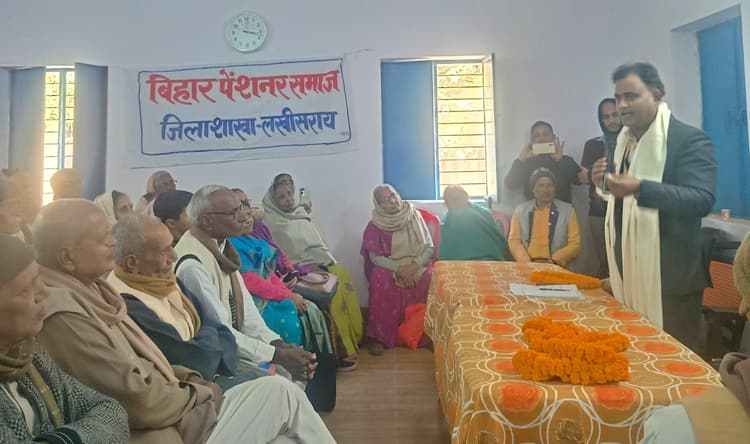 लखीसराय. शहर के पुरानी बाजार महिला थाना के समीप स्थित पेंशनर समाज भवन में मंगलवार को पेंशनर डे के अवसर पर श्रद्धांजलि सभा हुई. जिला पेंशनर समाज का आयोजन जिलाध्यक्ष जगदीश प्रसाद सिंह की अध्यक्षता व सचिव गणेश शंकर सिंह के मंच संचालन में संपन्न हुआ. इस वार्षिक समारोह में सर्वप्रथम पेंशन लागू करवाने वाले आइएस अधिकारी डीएस नाकरा को श्रद्धांजलि अर्पित की गयी. आगत अतिथियों एवं पेंशनर समाज ने उनके चित्र पर माल्यार्पण कर पुष्पांजलि अर्पित की. पेंशनर समाज के रामबालक पासवान और रामबालक सिंह ने कविता और गीत सुनाकर पेंशनरों का उत्साहवर्धन किया. मुख्य अतिथि के तौर पर कार्यक्रम में उपस्थित डीएम मिथिलेश मिश्र, डीइओ यदुवंश राम, स्टेट बैंक के प्रबंधक राय बहादुर सिंह एवं सेंट्रल बैंक के प्रबंधक निखिल कुमार को पेंशनर सचिव ने अंग वस्त्र और फूल माला देकर सम्मानित किया.