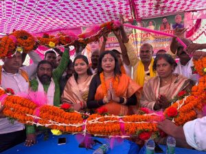 बिहार राज्य महिला आयोग के सदस्य बनने पर चाननवासियों ने पिंकी कुशवाहा के अपने गांव मलिया पहुंचने पर किया स्वागत