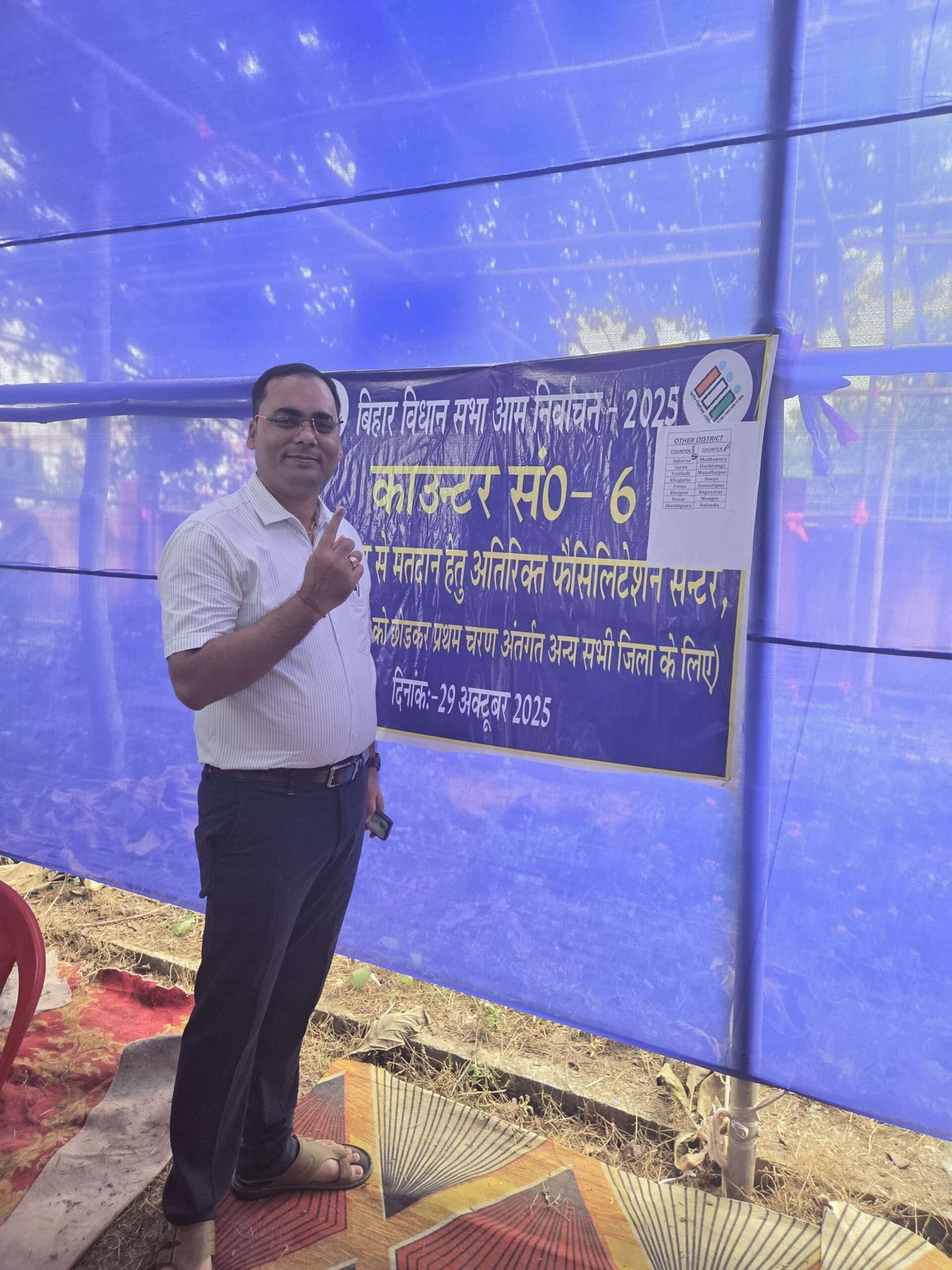 लोगों से की अपने मताधिकार का प्रयोग करने की अपील लखीसराय. बिहार विधानसभा आम निर्वाचन 2025 के अंतर्गत एसडीएम सह निर्वाची पदाधिकारी 168 लखीसराय विधानसभा प्रभाकर कुमार द्वारा पोस्टल बैलेट के माध्यम से मतदान किया गया. उन्होंने 138- विभूतिपुर विधानसभा क्षेत्र के लिए अपना मताधिकार का प्रयोग किया. निर्वाचन आयोग के निर्देशानुसार ऐसे सभी कर्मी व पदाधिकारी जिन्हें निर्वाचन कार्यों में लगाया गया है, उन्हें अपने निर्वाचन क्षेत्र में जाकर मतदान करने में कठिनाई होने पर पोस्टल बैलेट के माध्यम से मतदान की सुविधा प्रदान की गयी है. यह सुविधा प्रशिक्षण के दौरान बनाये गये मतदान फैसिलिटेशन सेंटर पर दी जाती है. एसडीओ ने मतदान के उपरांत कहा कि प्रत्येक अधिकारी व कर्मी को अपने मताधिकार का प्रयोग अवश्य करना चाहिए, क्योंकि लोकतंत्र को सशक्त बनाने में प्रत्येक वोट की भूमिका महत्वपूर्ण होती है. उन्होंने सभी निर्वाचन ड्यूटी पर नियुक्त कर्मियों से भी अपील किया कि वे अपने निर्धारित प्रशिक्षण केंद्रों पर जाकर पोस्टल बैलेट के माध्यम से मतदान करें और शत-प्रतिशत मतदान सुनिश्चित करने में अपनी भूमिका निभाएं.