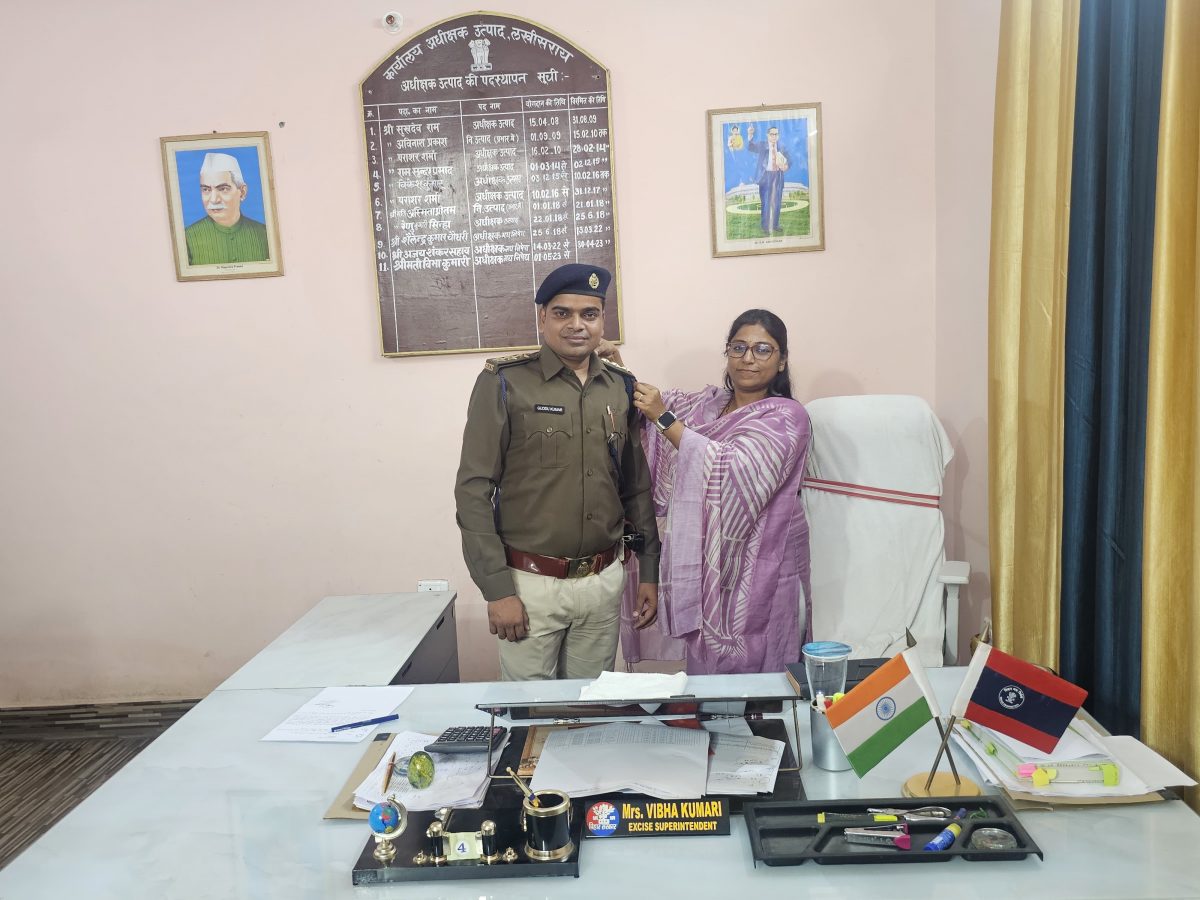 लखीसराय. मद्य निषेध विभाग के अवर निरीक्षक गुड्डू कुमार को निरीक्षक पद पर प्रोन्नत किया गया है. उत्पाद अधीक्षक विभा कुमारी द्वारा उनके कंधे पर दो स्टार के बदले तीन स्टार लगाकर उन्हें सम्मानित किया है. गुड्डू कुमार के प्रोन्नति पर उत्पाद अधीक्षक के अलावा निरीक्षक निर्मल कुमार, अवर निरीक्षक सिमरन भारती, सहायक अवर निरीक्षक रवि कुमार, विकास कुमार एवं नीरज कुमार समेत अन्य विभाग के कर्मियों ने उन्हें बधाई दी है. गुड्डू कुमार सामान्य कोटि से मद्य निषेध एसआई के रूप में अपना योगदान दिया था. उन्हें पदोन्नति सामान्य कोटि से ही मिली है. वह मूल निवासी शिवहर के हैं. नवंबर 2022 को उन्होंने लखीसराय में योगदान दिया था.
