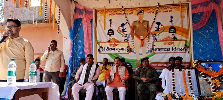 रामगढ़ चौक. प्रखंड अंतर्गत ग्राम पंचायत औरे के गरसंडा गांव में शहीद रोशन का छठा शहादत दिवस दुर्गा स्थान के प्रांगण में मनाया गया. जिसमें एएसपी अभियान मोतीलाल, रामगढ़ चौक थानाध्यक्ष मृत्युंजय कुमार पंडित एवं 205 कोबरा बटालियन केंद्रीय रिजर्व पुलिस बल बरवाडीह गया के सब इंस्पेक्टर राजवीर सिंह अपनी टीम के साथ उपस्थित हुए. वहीं पूर्व राजद विधायक फुलेना सिंह उपस्थित रहे. शहादत दिवस के मौके पर सर्वप्रथम उपस्थित लोगों को पांच मिनट का मौन रखकर दिवंगत आत्मा की शांति के लिए प्रार्थना की एवं उनकी चित्र पर बटालियन की सलामी के साथ पुष्पमाला अर्पित किये गये. बता दें कि शहीद रौशन ने विगत 13 फरवरी 2019 को गया जिले के लुटुआ थाना अंतर्गत आसुराईन गांव जंगलों में नक्सलियों के विरूद्ध चलाये जा रहे हैं विशेष अभियान के दौरान मुठभेड़ में आदम्य साहस एवं वीरता का परिचय अपनी शहादत दी थी. अदम्य साहस, शौर्य और वीरता के लिए इन्हें वीरता पदक से भी मरणोपरांत सम्मानित किया गया था. शहादत समारोह का संचालन सौरभ कुमार के द्वारा किया गया. वहीं शहादत सभा को संबोधित करते हुए रामगढ़ चौक थानाध्यक्ष मृत्युंजय पंडित ने बताया कि शहीद रौशन से समाज के हर एक नौजवान को प्रेरणा लेने की आवश्यकता है. जिन्होंने अपने देश के लिए हंसते-हंसते अपने प्राण को न्योछावर कर दिया. इसलिए हम सभी नौजवानों को अपने कर्तव्य और देश के प्रति समर्पित होना चाहिए. वहीं मुखिया राजीव कुमार ने कहा कि शहीद रौशन की प्रतिमा स्थापित करने की मांग शहादत दिवस के दिन से ही हो रही थी. उसके लिए जगह चिन्हित कर लिया गया है. वे अपनी योजना से जल्द ही उनकी प्रतिमा को स्थापित करायेंगे. वहीं पूर्व राजद विधायक फुलेना सिंह ने कहा कि शहीद रौशन की शहादत पर पूरे देश को गर्व है. खासकर लखीसराय जिला के लिए विशेष गर्व की बात है कि हमारे बीच का एक नौजवान अपने देश के एकता और अखंडता को बरकरार रखने के लिए अपने प्राण की बाजी लगा दी. एएसपी मोतीलाल ने कहा कि जिस समय शहीद रौशन की शहादत गया में हुई थी, उस वक्त उनकी पोस्टिंग भी वहीं थी. वे ही उनके पार्थिव शरीर को लेकर यहां आया था और आज में उसके शहादत दिवस पर उपस्थित हैं. मैंने उन्हें एक करीब से देखा हूं. उनमें थोड़ा सा भी भय नहीं था. सदैव अपने टीम में आगे बढ़कर मुकाबला करता था. जिसको लेकर उसे वीरता पदक से भी सम्मानित किया गया. मौके पर सौरभ कुमार, टुनटुन कुमार सिंह, मनोज कुमार, संजीत कुमार आदि दर्जनों लोगों के द्वारा बताया गया कि शहीद रोशन की शहीद हुए छह साल बीत जाने के बावजूद भी अभी तक शहीद द्वार का निर्माण नहीं करवाया गया है. इसलिए वे लोग यहां के जनप्रतिनिधि से यह मांग करते हैं कि युवाओं के मनोबल को बढ़ाने के लिए शहीद रोशन के नाम का शहीद द्वार जल्द से जल्