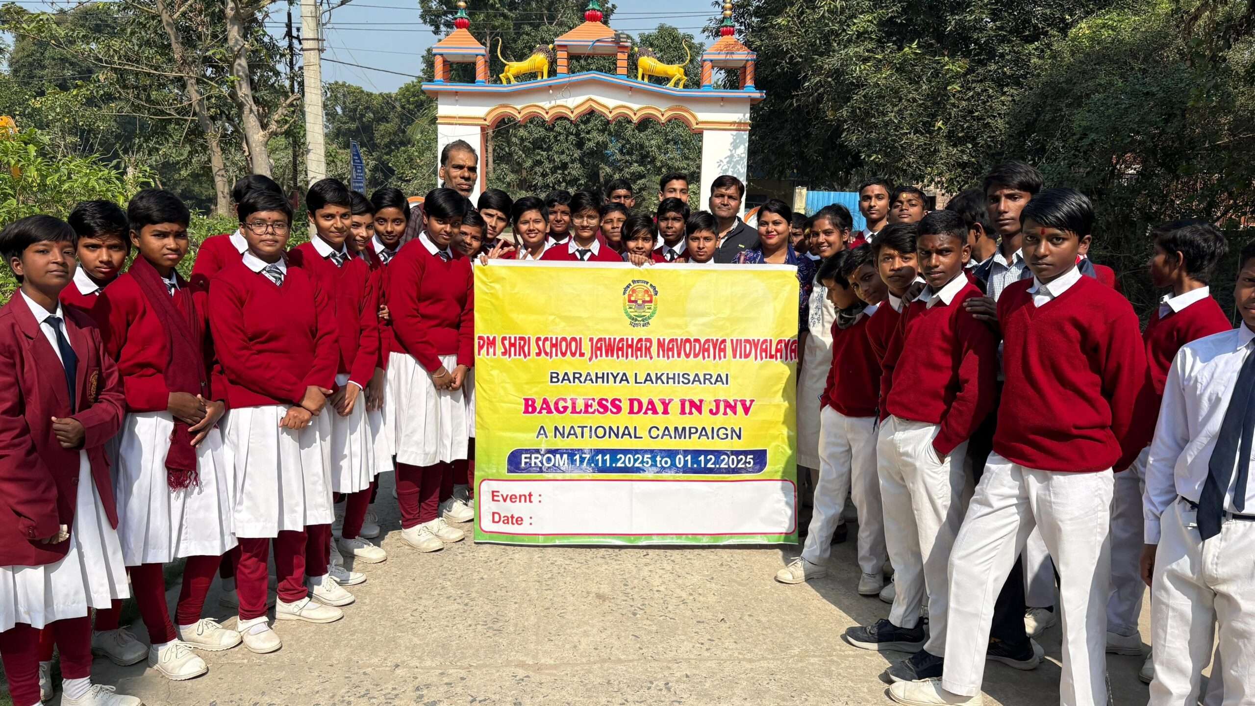 बड़हिया. शिक्षा को पुस्तकों से बाहर निकालकर अनुभव आधारित बनाने की दिशा में पीएमश्री जवाहर नवोदय विद्यालय बड़हिया में चल रहे 15 दिवसीय बैगलेस डे कार्यक्रम के तहत शुक्रवार को कक्षा छठी के विद्यार्थियों को स्थानीय शैक्षणिक भ्रमण कराया गया. इस दौरान छात्र-छात्राओं ने शहर के प्रमुख धार्मिक स्थल आदि काली मां मंदिर का अवलोकन किया और उसके ऐतिहासिक महत्व को समझा. विद्यालय के प्राचार्य नवीन कुमार सिन्हा और ओएस अवधेश कुमार ने हरी झंडी दिखाकर भ्रमण दल को रवाना किया. उन्होंने बताया कि बैगलेस डे का उद्देश्य बच्चों को तनावमुक्त वातावरण में कौशल आधारित व रचनात्मक शिक्षा प्रदान करना है. कार्यक्रम के दौरान छात्रों को मिट्टी के बर्तन बनाना, स्थानीय कला और शिल्प सीखना, तथा विभिन्न व्यावसायिक गतिविधियों से परिचित कराया जा रहा है. साथ ही कविता पाठ, वाद-विवाद, प्रश्नोत्तरी, रंगोली, पौधारोपण, सफाई अभियान, और खेल-कूद जैसी गतिविधियां भी आयोजित की जा रही हैं. इस अवसर पर शिक्षक मनीषा प्रसाद, मुकेश कुमार, मोना सिंह, संगीत शिक्षक अनिल कुमार सहित बड़ी संख्या में छात्र-छात्राएं मौजूद थे.
