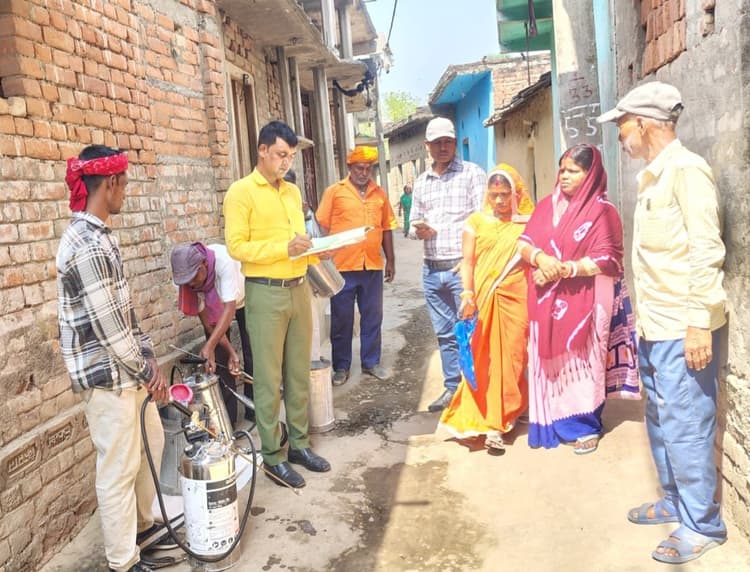 कालाजार उन्मूलन के लिए जिले के रामगढ़ प्रखंड के नंदगांव में सिंथेटिक पाउडर का छिड्काव किया जा रहा है