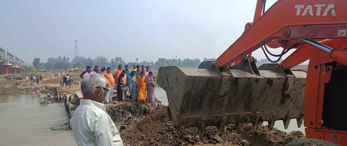 खगौर व वृंदावन के ग्रामीण तीन दिनों से अस्थायी रास्ते को बनाने का कर रहे थे कार्य