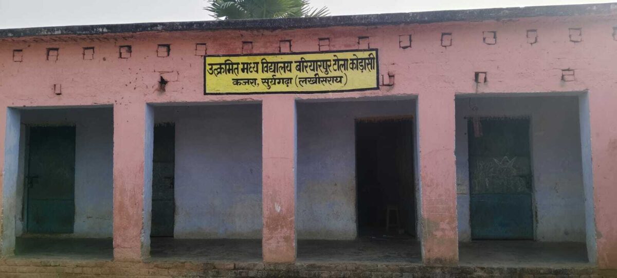 क्षेत्र अंतर्गत चौरा राजपुर पंचायत के उत्क्रमित मध्य विद्यालय बरियारपुर टोला कोडासी में शौचालय काफी समय से जर्जर अवस्था में है, जो लंबे समय से उपयोग में नहीं है