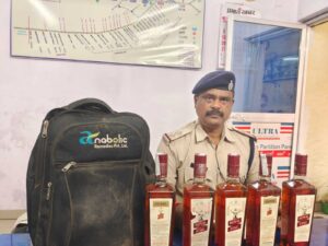ऑपरेशन सतर्क के तहत आरपीएफ ने पिट्ठू बैग के साथ बरामद की पांच बोतल शराब, तस्कर फरार
