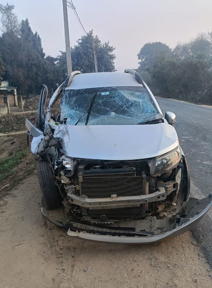 सूर्यगढ़ा. नगर परिषद क्षेत्र के नीरपुर गांव के समीप अज्ञात वाहन एक कार में टक्कर मारता हुआ फरार हो गया. घटना मंगलवार तड़के की बतायी जा रही है. हादसे में कार पर सवार तीन महिला, एक पुरुष एवं एक बच्चा के जख्मी होने की सूचना है. सूर्यगढ़ा थानाध्यक्ष भगवान राम ने बताया कि अज्ञात वाहन कार में टक्कर मारता फरार हुआ हो गया. थानाध्यक्ष ने बताया कि हादसे में कितने लोग घायल हुए इसकी जानकारी अभी नहीं मिली है. सभी घायल इलाज के लिए चले गये. क्षतिग्रस्त कार को पुलिस की देखरेख में रखा गया है. आवेदन मिलने पर आगे की कार्रवाई की जायेगी. नशे की हालत में एक व्यक्ति को पुलिस ने किया गिरफ्तार सूर्यगढ़ा. स्थानीय पुलिस ने चकमसकन माली टोला से इसी मोहल्ले के रहने वाले राजेश साव के पुत्र नीतीश कुमार को गिरफ्तार किया है. एसआई राधेश्याम प्रसाद के लिखित बयान पर सूर्यगढ़ा थाना में मामले को लेकर कांड संख्या 27/25 के तहत प्राथमिकी दर्ज किया गया है. मंगलवार को शराबी को पेशी के लिए कोर्ट भेजा गया.