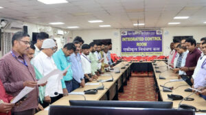 समाहरणालय स्थित मंत्रणा कक्ष में डीएम ने कार्यालय के सभी अधिकारी व कर्मियों के साथ “वंदे मातरम्” सामूहिक स्वर में गाया गया