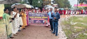 बारिश के बीच ही स्वीप कोषांग के द्वारा निकाली गयी मतदाता जागरूकता रैली
