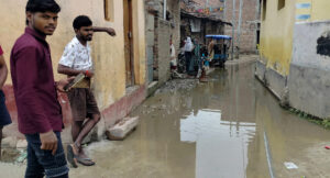 गरीबनगर में नयी सड़क के ढलाई से पासवान टोली के रोड पर जलजमाव