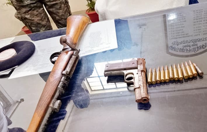 स्थानीय पुलिस ने सोमवार को नंदपुर गांव से हथियार बरामद करने में सफलता प्राप्त की है. नंदपुर से एक देसी राइफल, एक देसी पिस्टल व 11 कारतूस जब्त किया है. इन हथियार को एक बोरे में बंद कर झाड़ी में छिपा कर रखा गया था. इसके संबंध में मिली गुप्त सूचना के आधार पर पुलिस ने इन हथियारों को जब्त किया. मामले को लेकर सूर्यगढ़ा के अपर थानाध्यक्ष रंजीत कुमार के लिखित बयान पर सूर्यगढ़ा थाने में कांड संख्या 182/24 के तहत प्राथमिकी दर्ज की गयी है. इसमें नंदपुर गांव के रामशरण सिंह के पुत्र अमरजीत कुमार को नामजद किया गया है. पुलिस से मिली जानकारी के मुताबिक, हथियार अमरजीत कुमार के बथान के पास झाड़ी से बरामद हुआ. उसे प्लास्टिक बोरे में बंद कर रखा गया था. पुलिस के मुताबिक आरोपित फरार है. बता दें कि आपसी वर्चस्व को लेकर नंदपुर गांव में अक्सर गोलीबारी होती रही है. लेकिन हाल के दिनों में आपराधिक घटनाओं में अप्रत्याशित कमी आयी है. इस संबंध में सूर्यगढ़ा थानाध्यक्ष भगवान राम ने बताया कि पुलिस ने नंदपुर गांव से हथियार व कारतूस बरामद किया है. मामले में अभी किसी की भी गिरफ्तारी नहीं हुई है. प्राथमिकी दर्ज की गयी है. इसमें एक व्यक्ति को नामजद किया गया है. आरोपित फरार है.डिस्क्लेमर: यह प्रभात खबर समाचार पत्र की ऑटोमेटेड न्यूज फीड है. इसे प्रभात खबर डॉट कॉम की टीम ने संपादित नहीं किया है