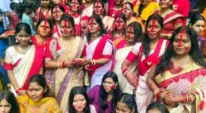 सिंदूर खेला के साथ महिलाओं ने दी मां दुर्गा को विदाई
