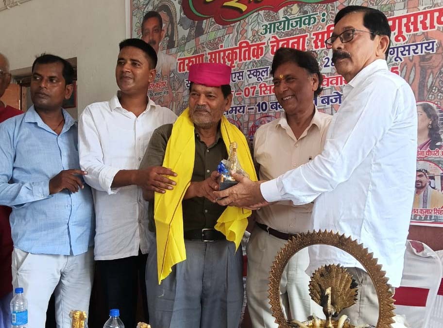 सूर्यगढ़ा. क्षेत्र के प्रसिद्ध गजलकार, साहित्यकार और जनता कालेज के पूर्व प्राचार्य राजेंद्र राज को बरौनी के निकट तेघड़ा में आयोजित राज्य स्तरीय कवि सम्मेलन में अटल साहित्य कला रत्न से सम्मानित किया गया. बेगूसराय समस्तीपुर तरुण चेतना समिति के संस्थापक सह अध्यक्ष सीताराम शेरपुरी, मद्रास साहित्य अकादमी के ईश्वर करुण, प्रसिद्ध गीतकार सच्चिदानंद पाठक, आनंद कुमार, एस जायसवाल, डीपीएस के निदेशक राजीव कुमार सचिव मंटू झा, अर्चना झा और समस्तीपुर की चर्चित कवयित्री रंजना लता ने संयुक्त रूप से मिथिला के पाग, चादर एवं प्रशस्ति पत्र देकर सम्मानित किया. राज्य स्तरीय इस कवि सम्मेलन में उन्होंने गजलों की प्रस्तुति से श्रोताओं को प्रभावित किया.