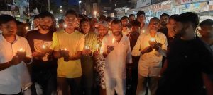 जिले के प्रसिद्ध फिजिकल ट्रेनर 30 वर्षीय गगन कुमार की सड़क हादसे में गुरुवार को मौत के बाद उन्हें श्रद्धांजलि देने के लिए शुक्रवार की देर शाम सड़क पर कैंडल लेकर युवाओं की भीड़ उमड़ पड़ी