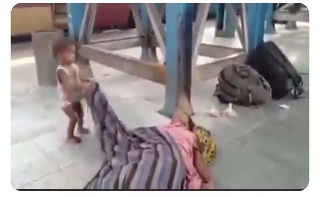 एक तरफ जहां लॉकडाउन के दौरान प्रवासियों का ट्रेनों से अपने घर वापस आने का सिलसिला जारी है वहीं सोशल मीडिया पर इसी कड़ी से जुड़ा एक भावुक कर देने वाला वीडियो काफी वायरल हो रहा है. इस वीडियो में एक युवती प्लेटफार्म के फर्स पर पड़ी है.वहीं उसके दो मासूम बच्चे हकीकत से अंजान होकर अपनी मां को उठाने की कोशिश करते हुए दिख रहे हैं. यह वीडियो बिहार के मुजफ्फरपुर जंक्शन का बताया जा रहा है और #Muzzafarpur हैशटैग के साथ ट्वीटर और अन्य सोशल मीडिया प्लेटफार्मों पर काफी ट्रेंड कर रहा है.