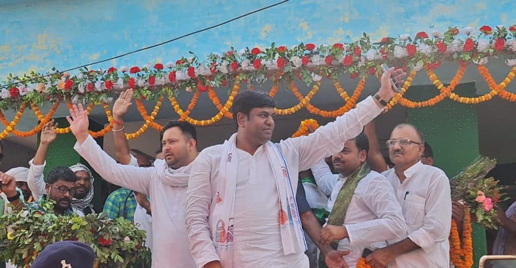 सभा को संबोधित करते तेजस्वी
