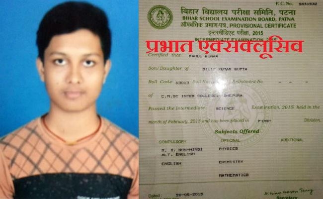 18 फरवरी, 2015 को सुपौल जिले के हरदी स्थित एसडीएसकेबी उच्च विद्यालय परीक्षा केंद्र पर सीएम साइंस कॉलेज में नामांकित छात्र के रूप में इंटर की परीक्षा दी थी. इस केंद्र पर बोर्ड द्वारा निर्गत प्रवेश पत्र में राहुल का रोल नंबर 63013 और रोल कोड 10809 अंकित है. परीक्षा के बाद हुए मूल्यांकन कार्य में राहुल को प्रथम श्रेणी से उत्तीर्ण करने के बाद विज्ञान संकाय का अंकपत्र बोर्ड द्वारा जारी कर दिया जाता है. इतना ही नहीं, 20 मई, 2015 को बिहार विद्यालय परीक्षा समिति द्वारा प्रवर्जन प्रमाण पत्र भी निर्गत करते राहुल के उज्ज्वल भविष्य की कामना करते अपने कर्तव्य की इतिश्री कर चुकी है.