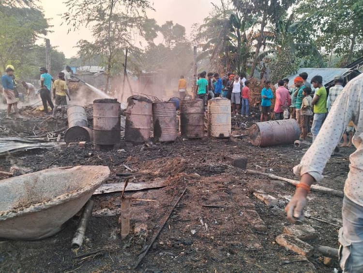 ग्वालपाड़ा. प्रखंड क्षेत्र अंतर्गत सरौनी कला पंचायत के वार्ड नंबर 11 शर्मा टोला में चूल्हे की चिंगारी से आग लग गयी, जिससे रंजन ऋषिदेव, इंदल ऋषिदेव, मंजेश ऋषिदेव, रणजीत ऋषिदेव समेत सात लोगों का घर जल गया, जिससे लाखों की क्षति हुई. लोगों ने घटना की जानकारी अंचलाधिकारी को दी. अंचलाधिकारी देव कृष्ण कामत, राजस्व कर्मचारी विकास कुमार ने घटनास्थल पर पहुंच कर स्थिति का जायजा लिया. अग्नि पीड़ित परिवार को तत्काल सहायता दिया. वही सरकारी मुआवजा राशि देने की बात कही.