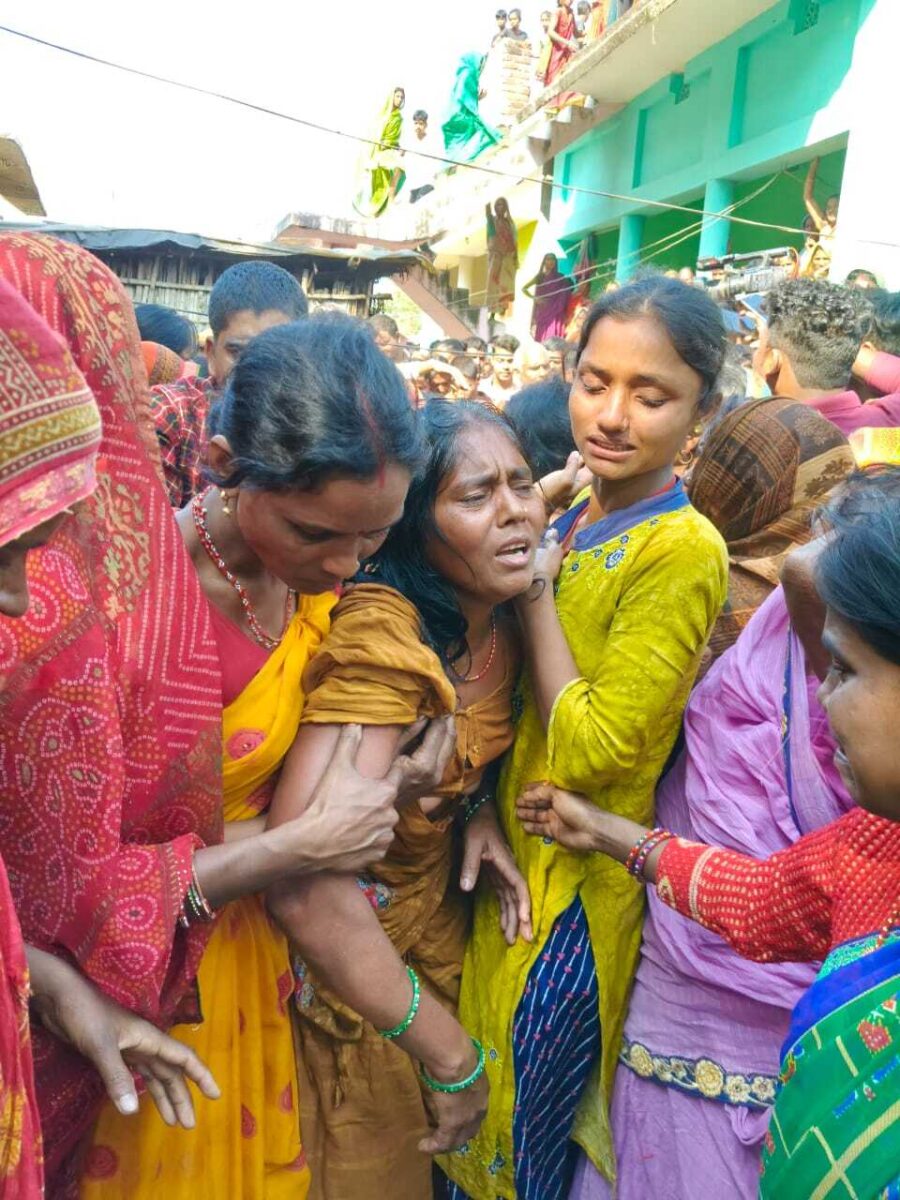 फोटो- 09 मृतक के घर शव पहुंने के बाद लोगों की भीड़.